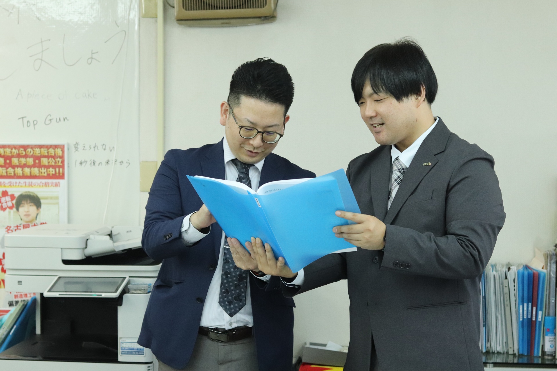 「大学時代に約2年間、講師アルバイトで働いていました。講師一人ひとりの意見が汲み取られ、生徒のために『一番良い選択』を自分の裁量で決められることに、入社を決断しました。引き継いだ生徒とのエピソードで、学習の定着度が低かったため思い切って教材の最初に戻り、基礎からやり直すことを提案しました。生徒本人と話し合い「リセットして進みたい」という意思を尊重しました。社員の方もその判断を受け入れ、結果的に偏差値は半年で30台から60台後半へと大きく伸びました。この柔軟性と信頼関係は強く残っています。今は、講師育成や校舎運営、書店営業など業務範囲が大きく広がり、校舎を動かしている実感が日々のやりがいです。」